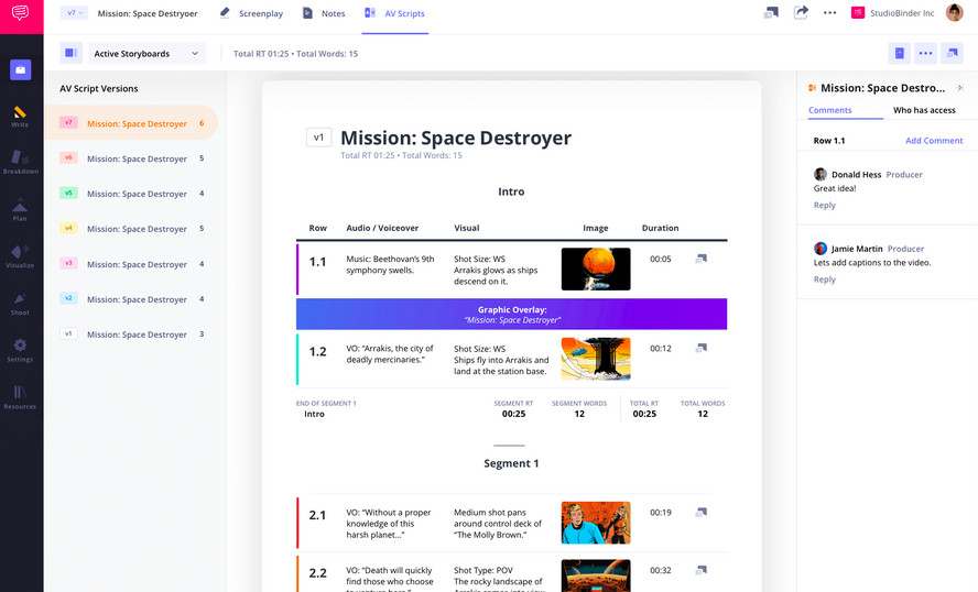 StudioBinder isn’t a TV production suite but it’s a useful web based film production software for Mac and PC which focuses on the job of organizing your video production project efficiently and smoothly.