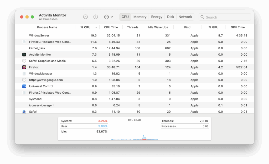 This gives you a real-time, text-based list of the most CPU-hungry processes, including some that Activity Monitor doesn’t show by default.