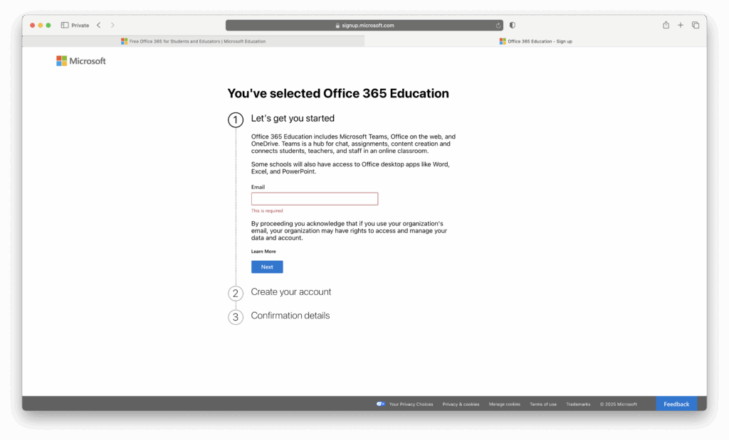 Tip: Not all educational institutions are eligible. If your school doesn’t participate, you can still use Microsoft 365 online for free (more on that below).
