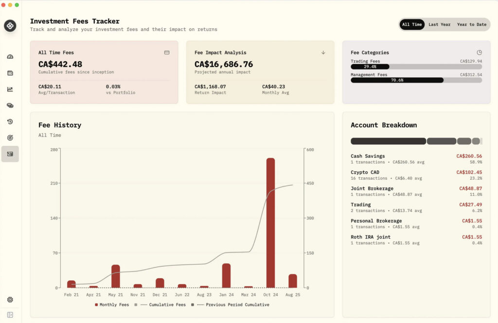 One of the most striking things about Wealthfolio is the clean, uncluttered interface. Wealthfolio is “boring but reliable” and will appeal to all those that just want the facts and don’t want up-selling more services.