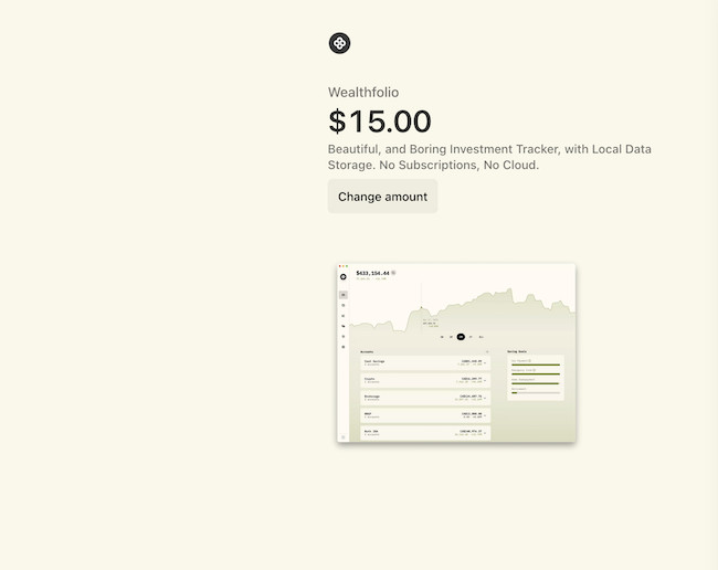 If you’re someone who doesn’t want to use cloud services for financial tracking, this is one of its major strengths. You don’t have to give APIs or credentials to external services, and there’s no cloud-subscription like there is with some many investment trackers nowadays. There are also no features locked behind premium tiers and the app only requests an “optional” payment if you wish to. Wealthfolio suggest $15.00 on the payment page although you can change this to whatever you want – on not pay anything at all.